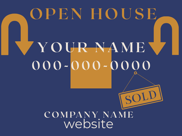 18″x24″ Open HouseĀ sign printed on both sides, 1 side has straight ahead arrows and 1 side has U-turn arrows.